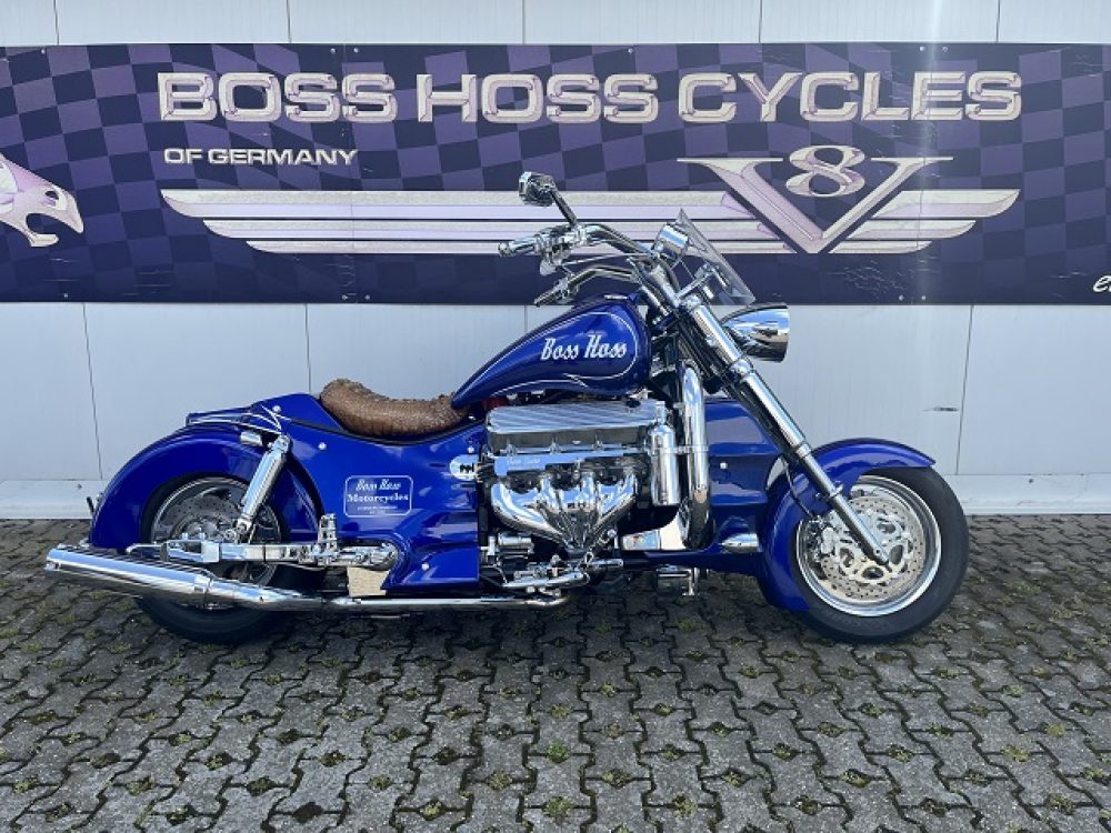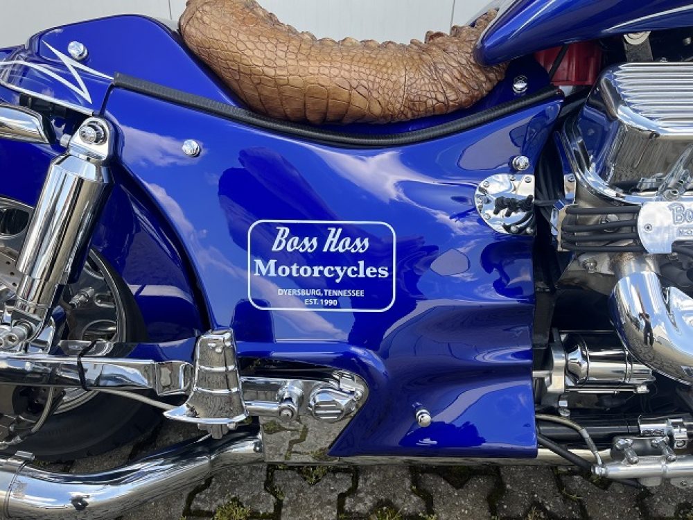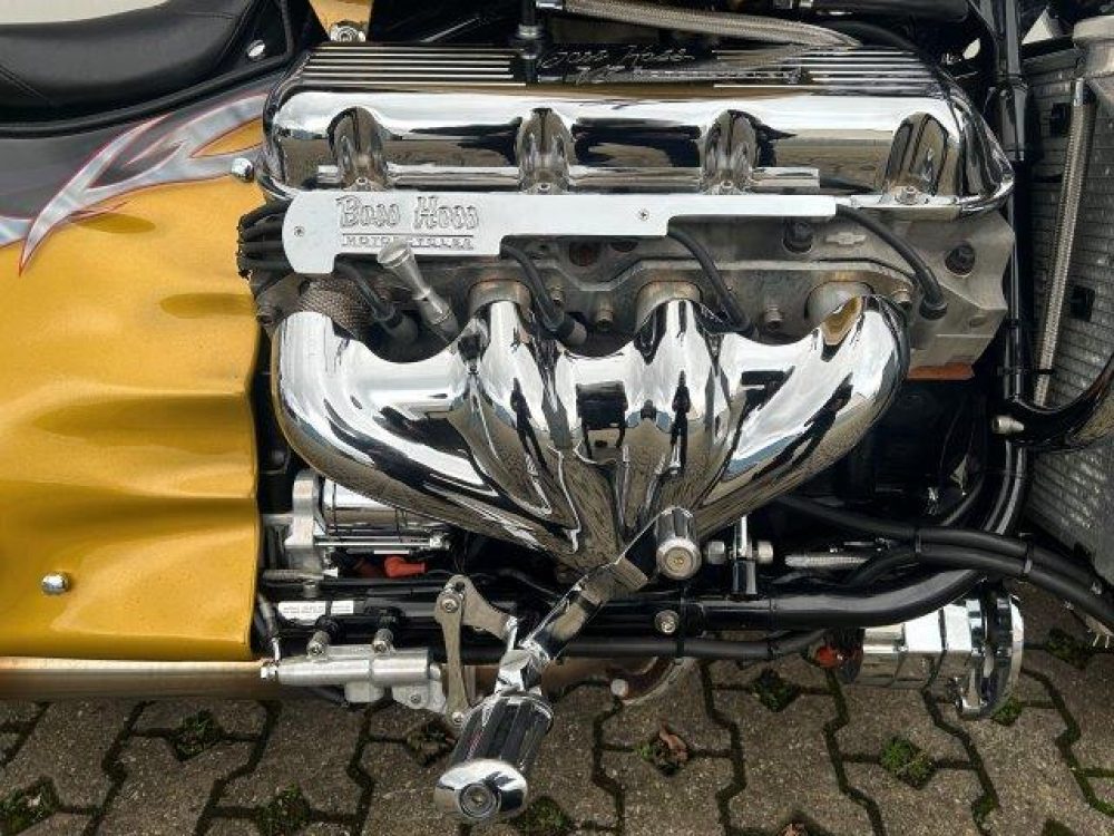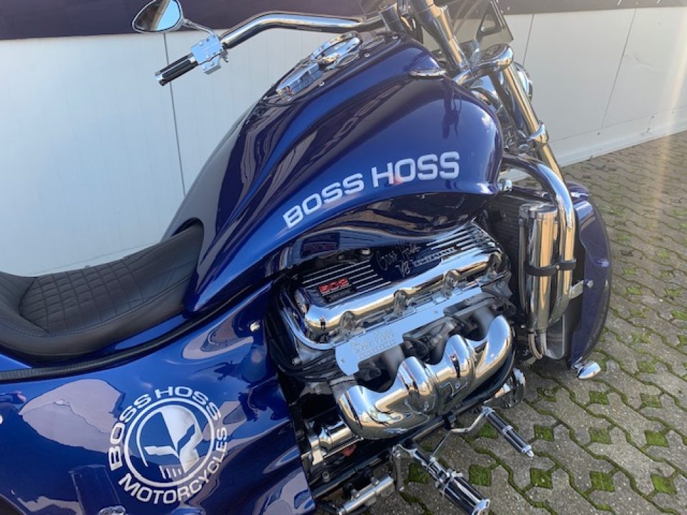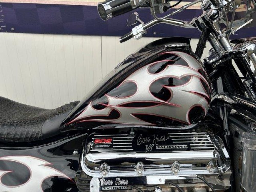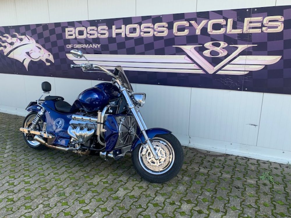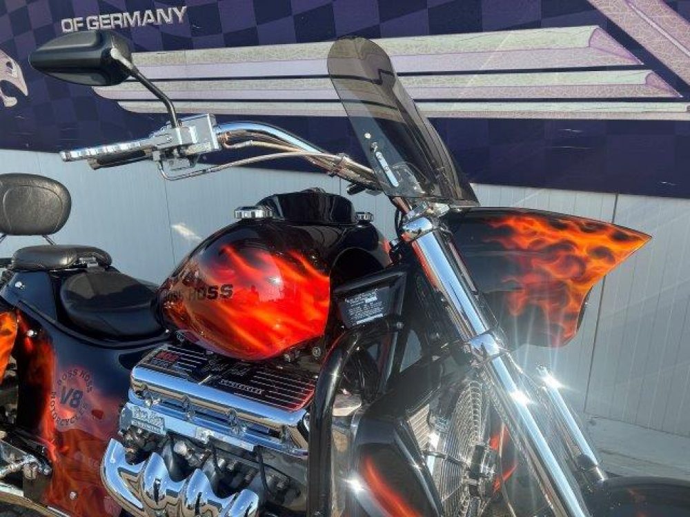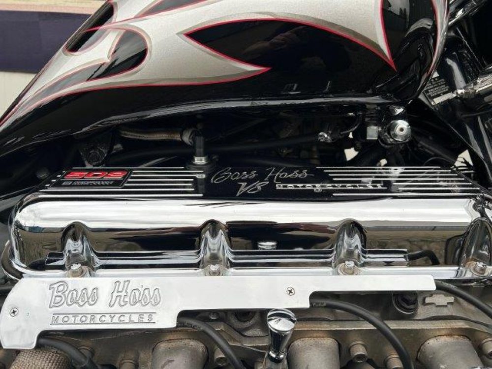 Besonderes: Blinker hinten und vorne LED mit Rücklicht, FAST Einspritzanlage, Winters Getriebe, Hyperpro Stoßdämpfer, , Sidepipes mit Schalldämpfern, Sissy Bar mit Luggage Rack und Boss Hoss Emblem, Beringer Bremszylinder links für Bremse hinten, Beringer Bremszylinder rechts für Bremse vorne, Kennzeichenhalter seitlich, Jockey Shifter chrom, Highway Pegs, Windvest Windschild und Großes Windschild, Garmin Navigation, Crash bars chrom, Fender vorne und hinten gekürzt.