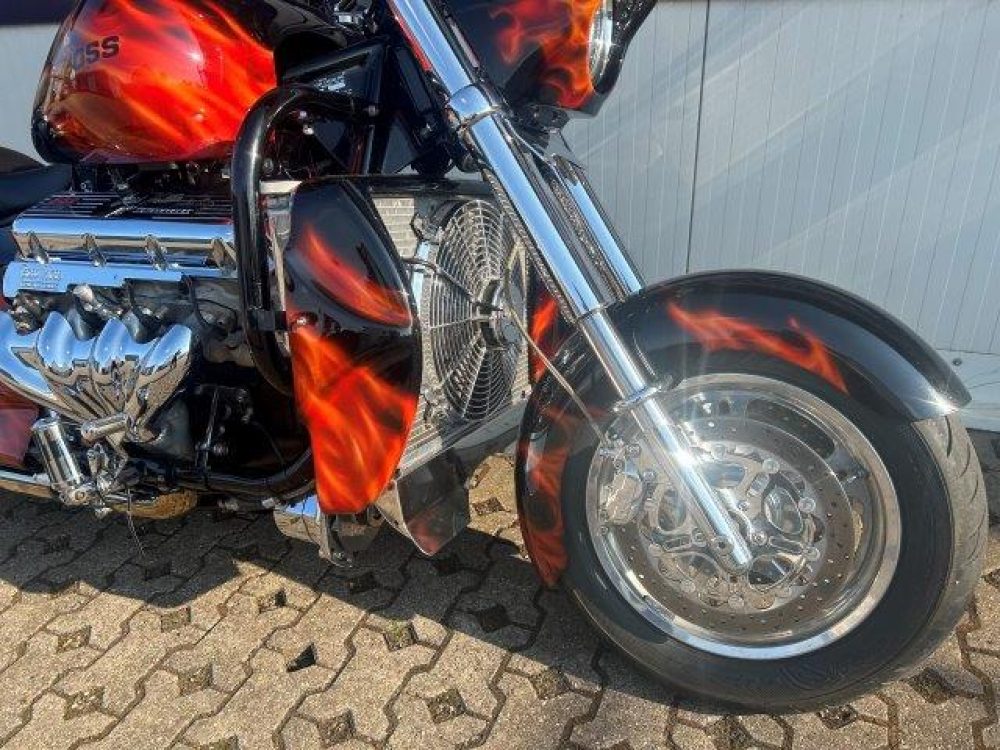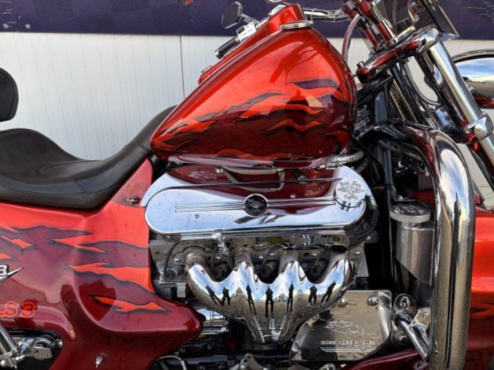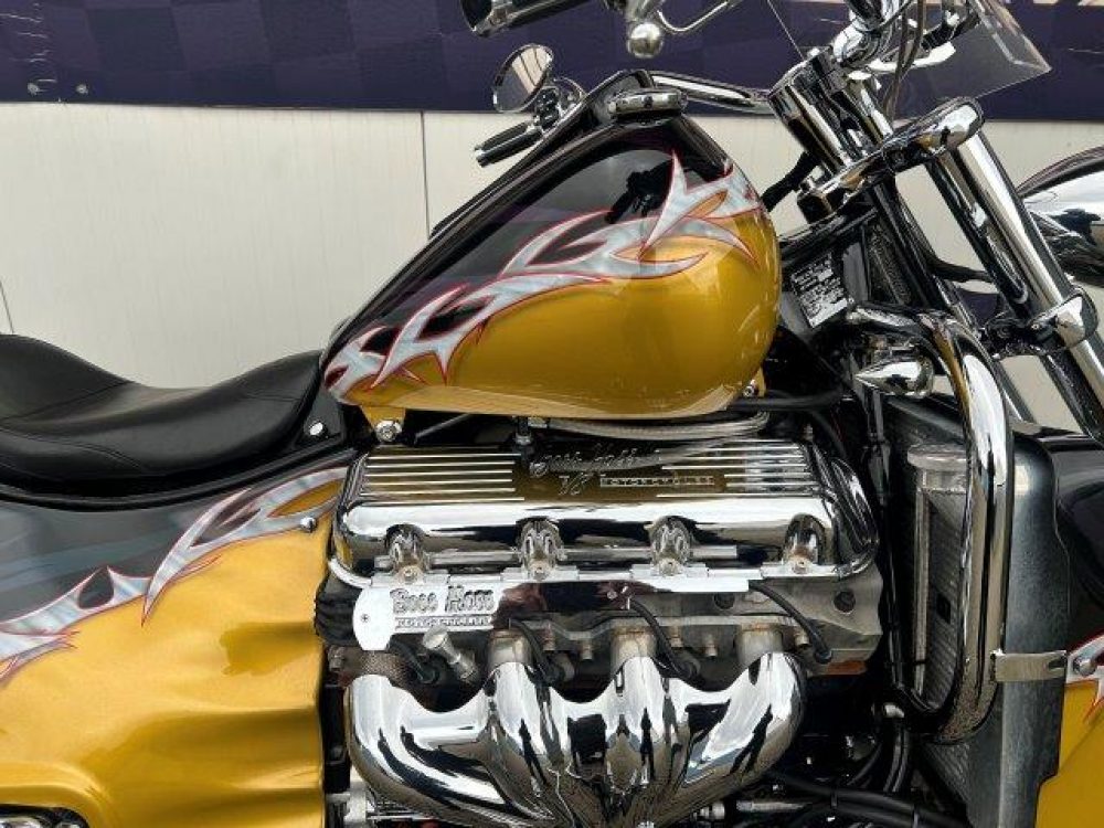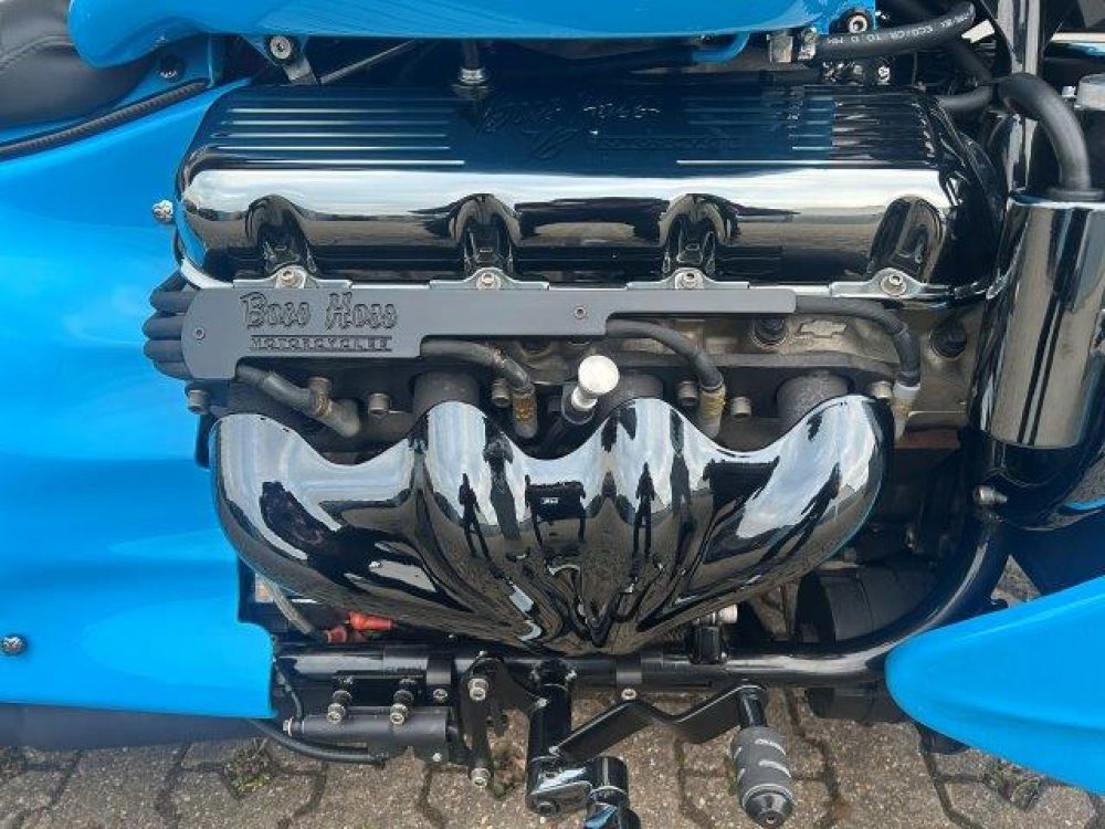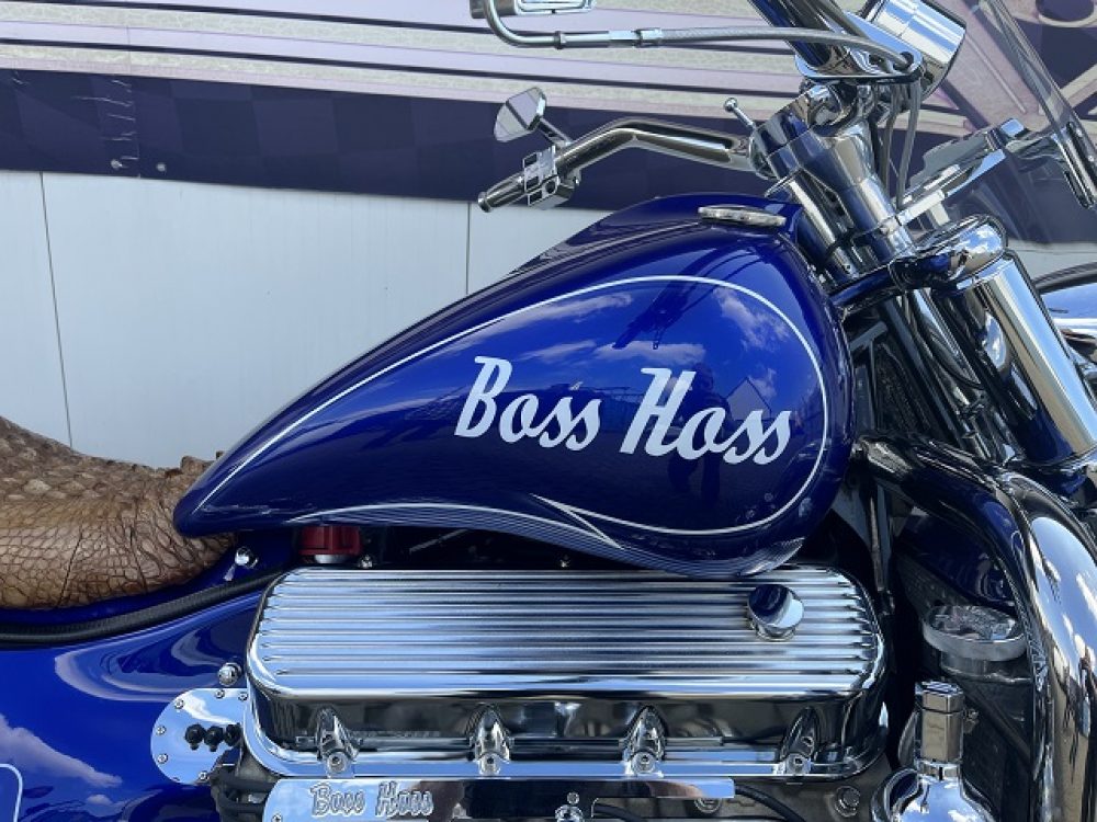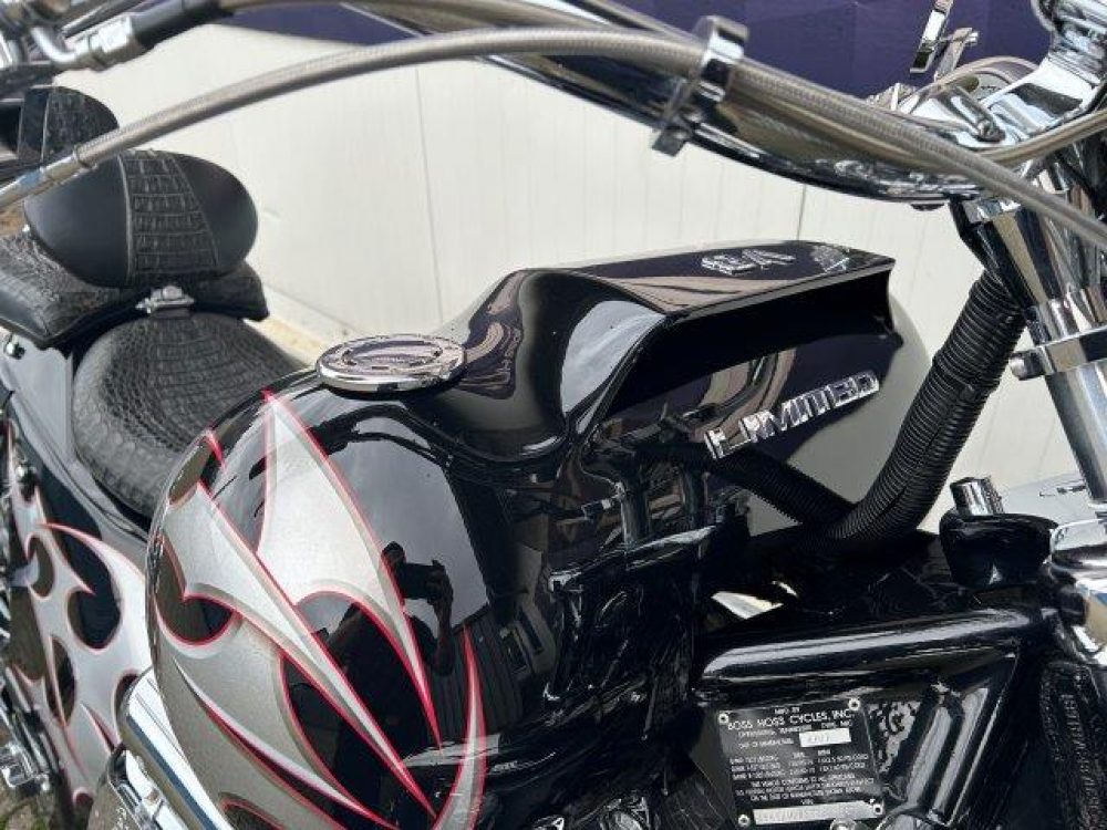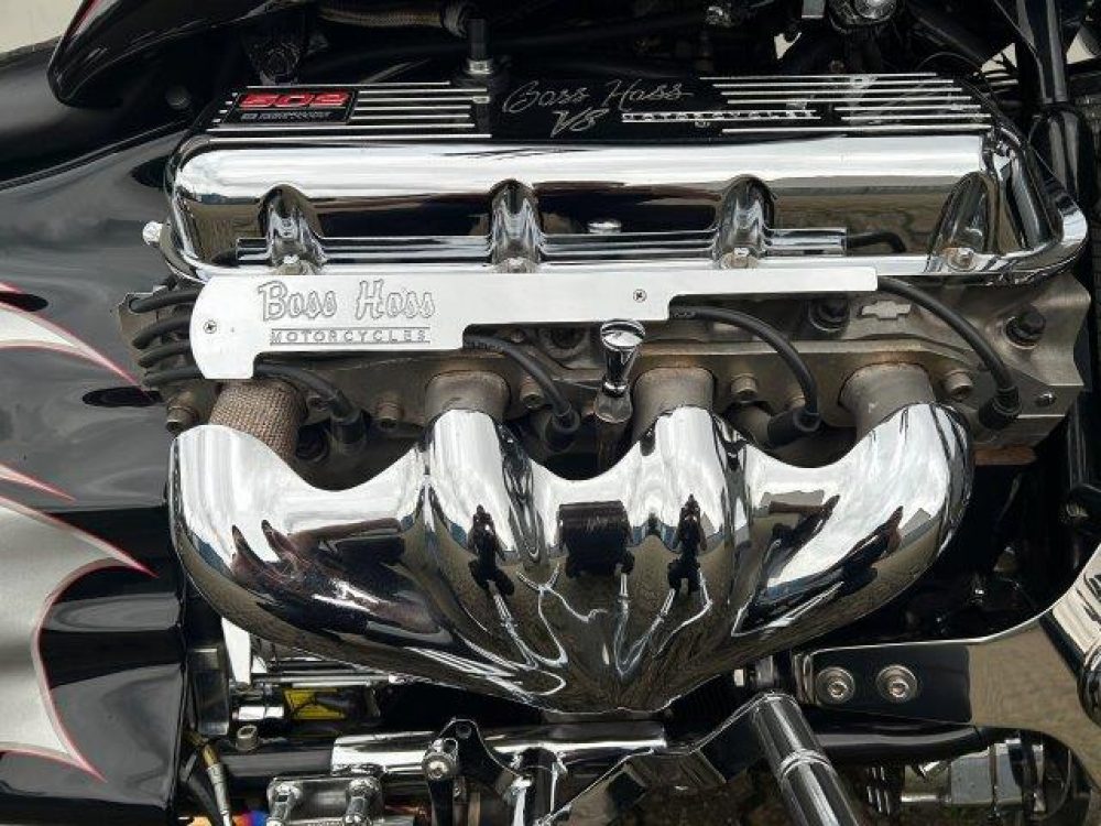 Besonderes: Blinker hinten und vorne LED mit Rücklicht, FAST Einspritzanlage, Winters Getriebe, Hyperpro Stoßdämpfer, , Sidepipes mit Schalldämpfern, Sissy Bar mit Luggage Rack und Boss Hoss Emblem, Beringer Bremszylinder links für Bremse hinten, Beringer Bremszylinder rechts für Bremse vorne, Kennzeichenhalter seitlich, Jockey Shifter chrom, Highway Pegs, Windvest Windschild und Großes Windschild, Garmin Navigation, Crash bars chrom, Fender vorne und hinten gekürzt.