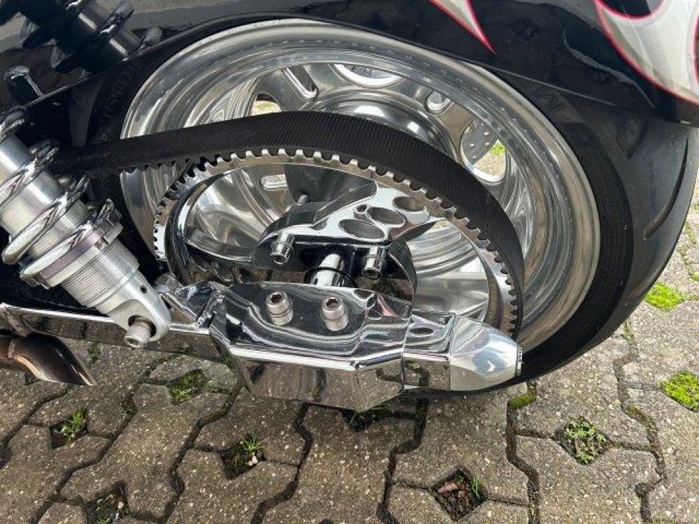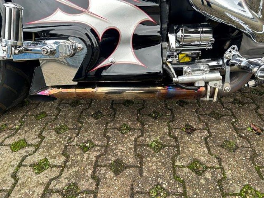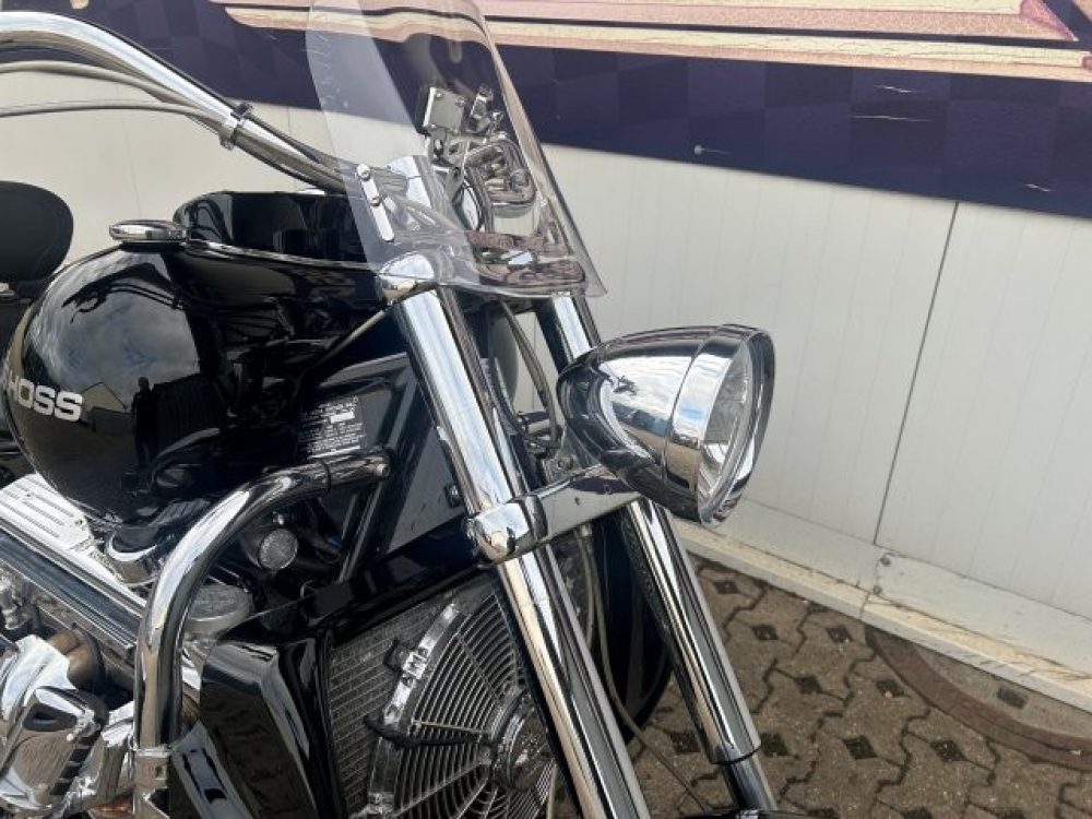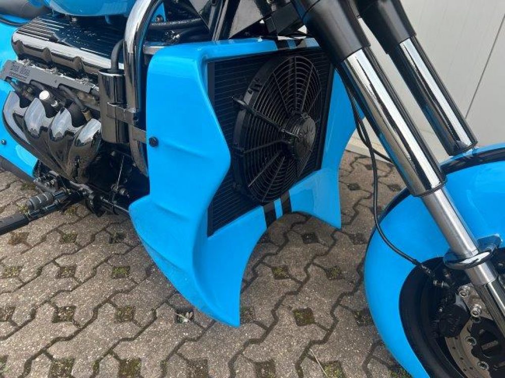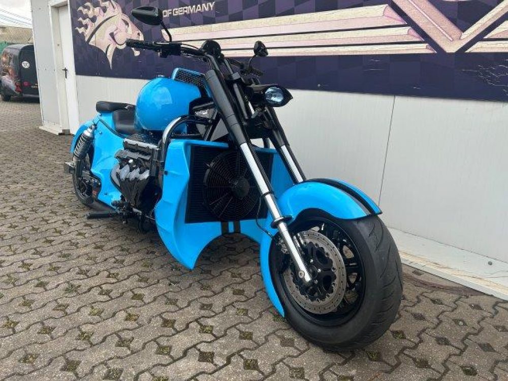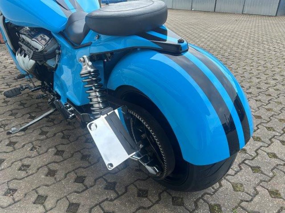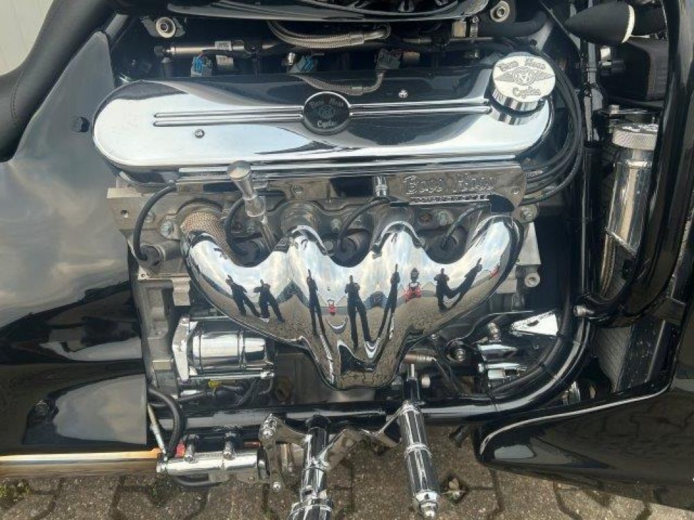 Besonderes: Frontfender Boss Hoss Concepts, Kühlerverkleidung Boss Hoss Concepts, Seitendeckel Boss Hoss Concepts, Custom Tank, Motogadget Motoscope in Riser eingelassen, Drag Bar, Kewl Metal Frontend, Scheinwerfer Custom CNC, Auspuff von Modell ab 2008 mit Kat und Schalldämpfer, Custom Pulley hinten, Alle Chrom Teile schwarz Verchromt.
