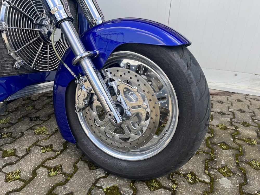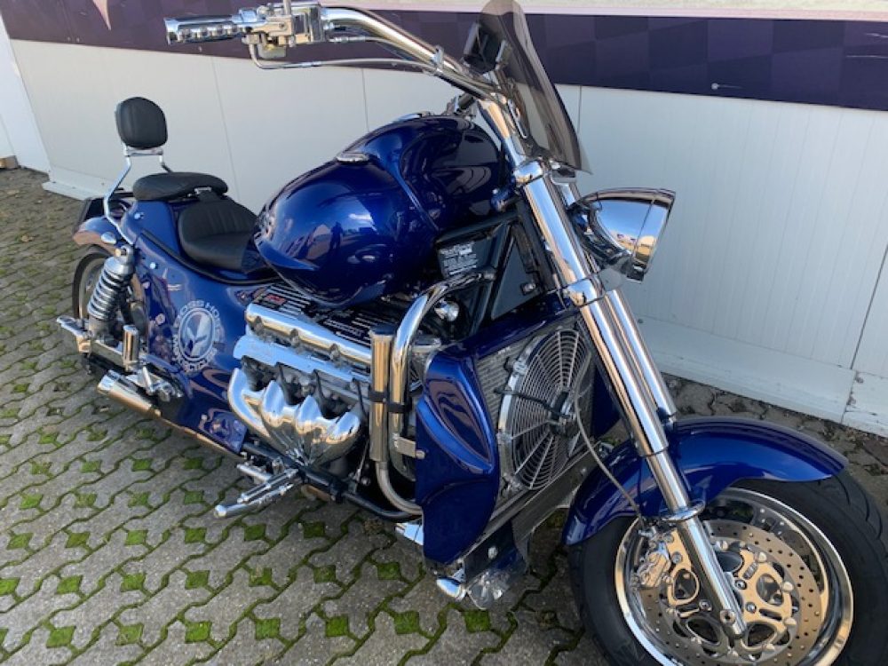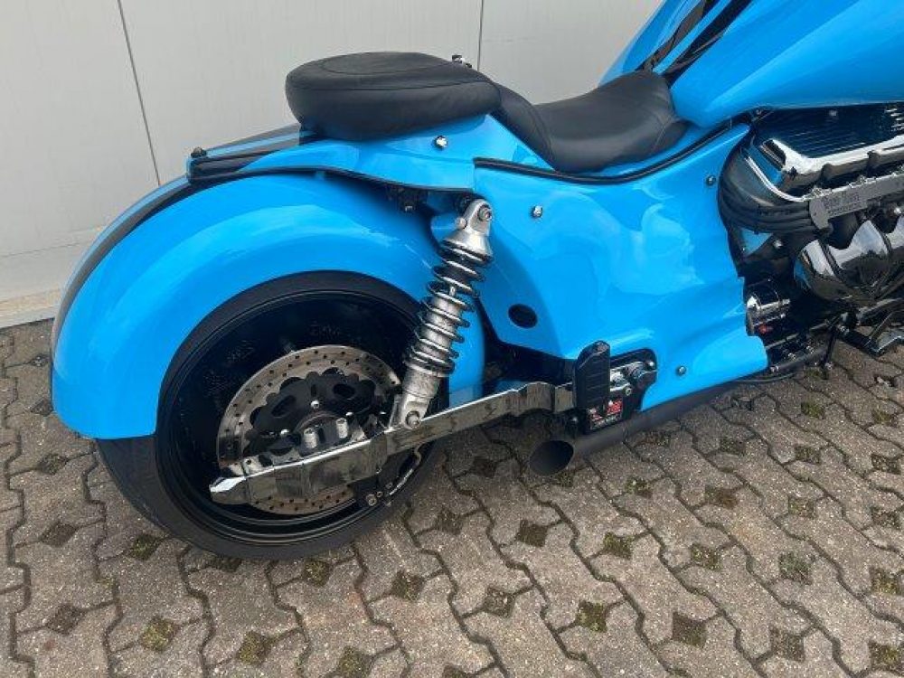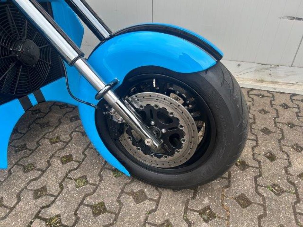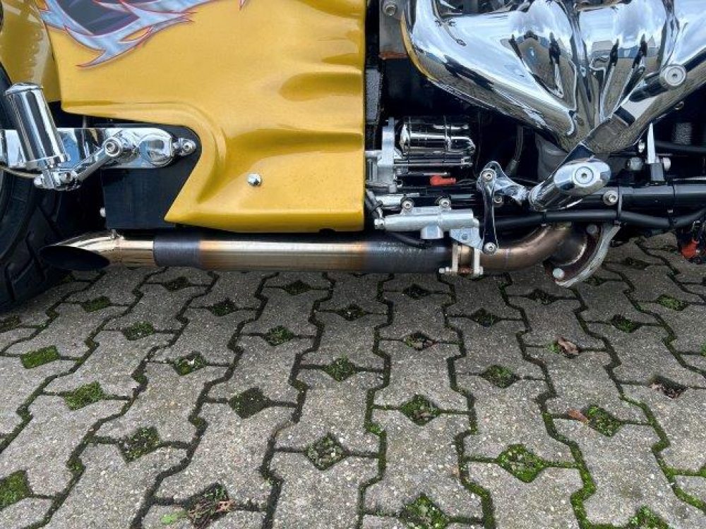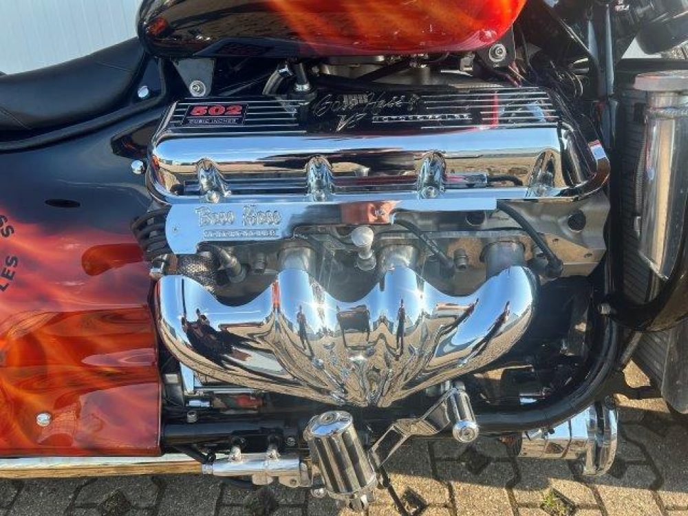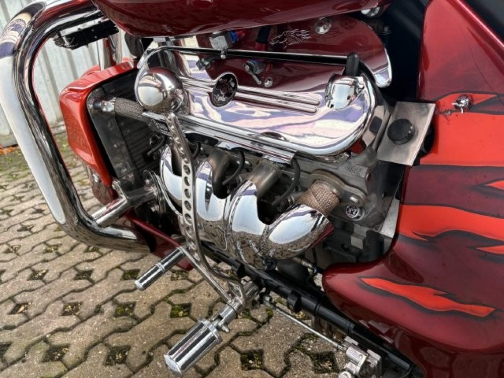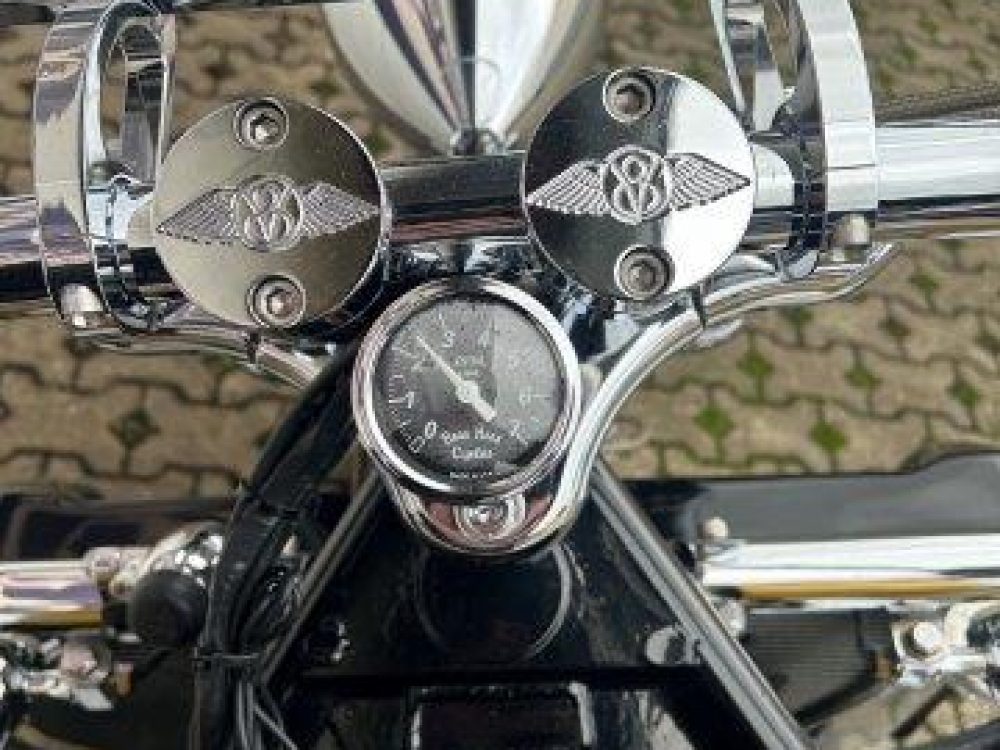 Besonderes: Frontfender Boss Hoss Concepts, Kühlerverkleidung Boss Hoss Concepts, Seitendeckel Boss Hoss Concepts, Custom Tank, Motogadget Motoscope in Riser eingelassen, Drag Bar, Kewl Metal Frontend, Scheinwerfer Custom CNC, Auspuff von Modell ab 2008 mit Kat und Schalldämpfer, Custom Pulley hinten, Alle Chrom Teile schwarz Verchromt.