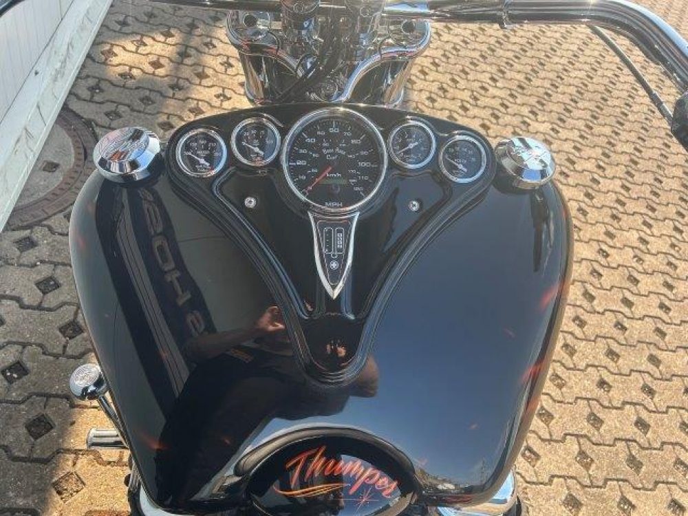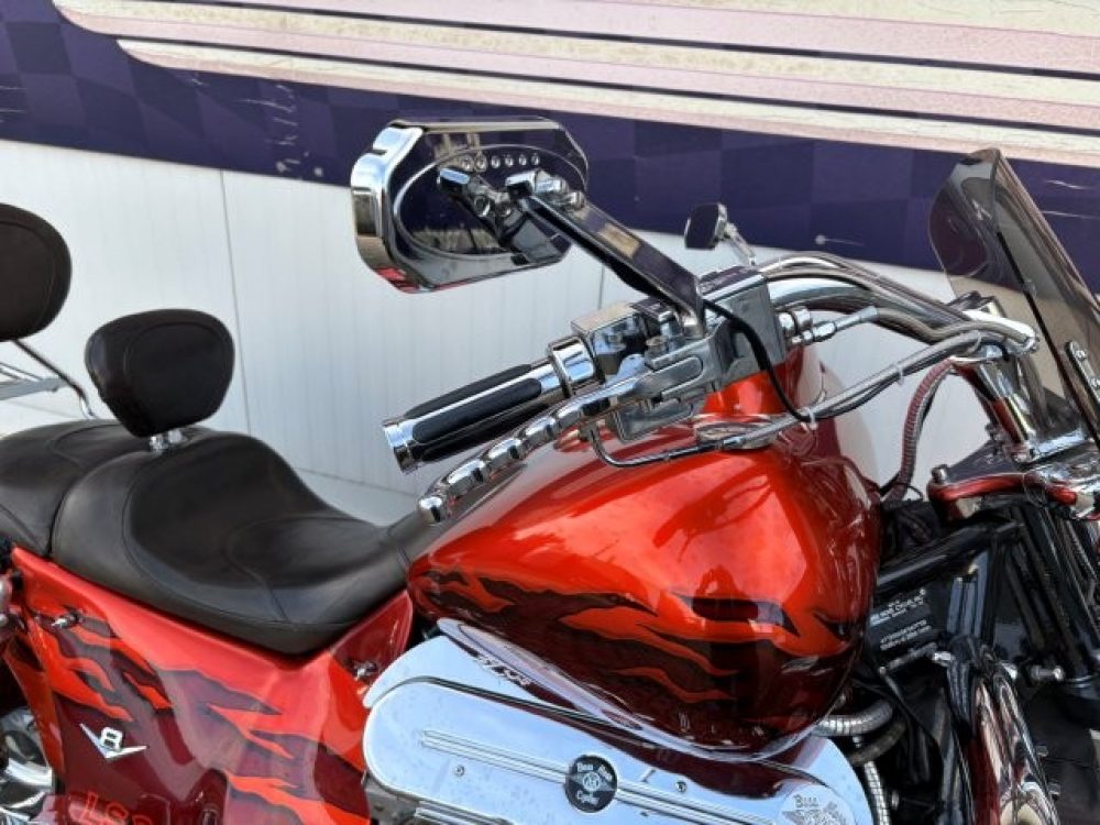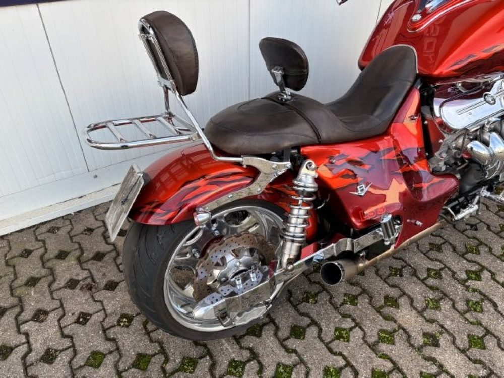 Besonderes: 4 teilige Alligator Sitzbank Farbe Cognac oder wahlweise schwarzes Büffelleder, Luggage Rack und Sissy Bar, Stretchtank Mountain Boss Hoss, Lenker 42mm, Custom Gabelhülsen, Dakita Digital Instrumente, Arnott Airride, Custom Kühlerverkleidung, Muth Mirrors mit Blinker, Winters Getriebe, Zusatzöltank, großer Getriebeölkühler, Kühlerausgleichsbehälter, Sturzbügel 60mm, Windvest Windschild, Stahlfender vorne und hinten, running lights, Custom Schalldämpfer Endstücke.