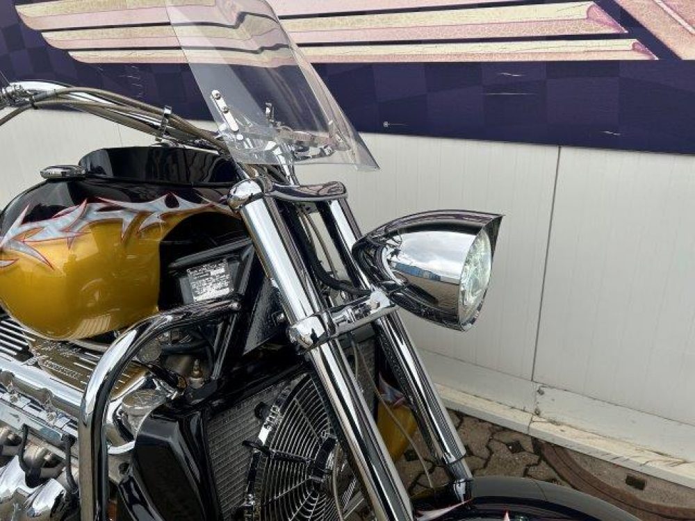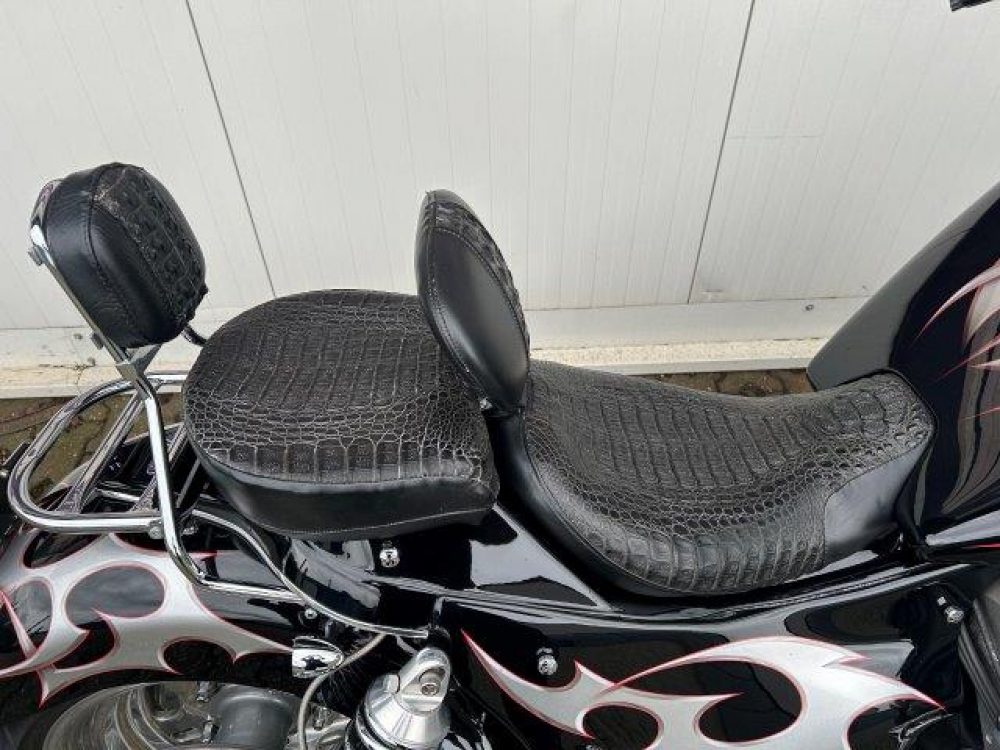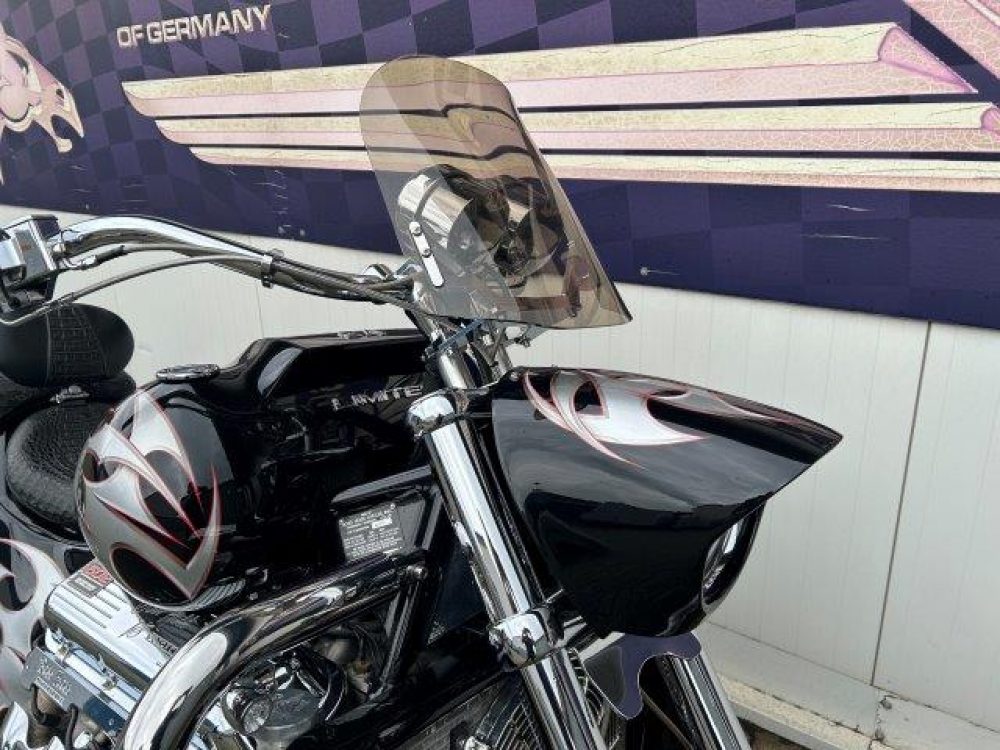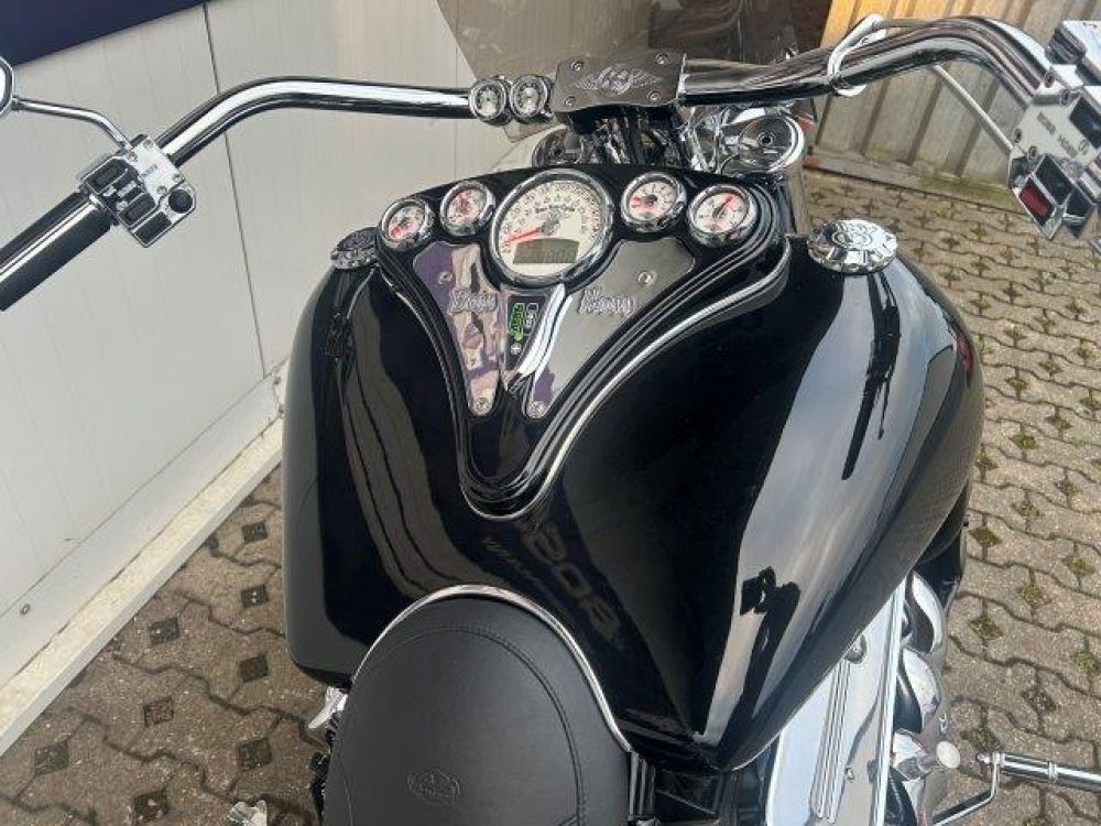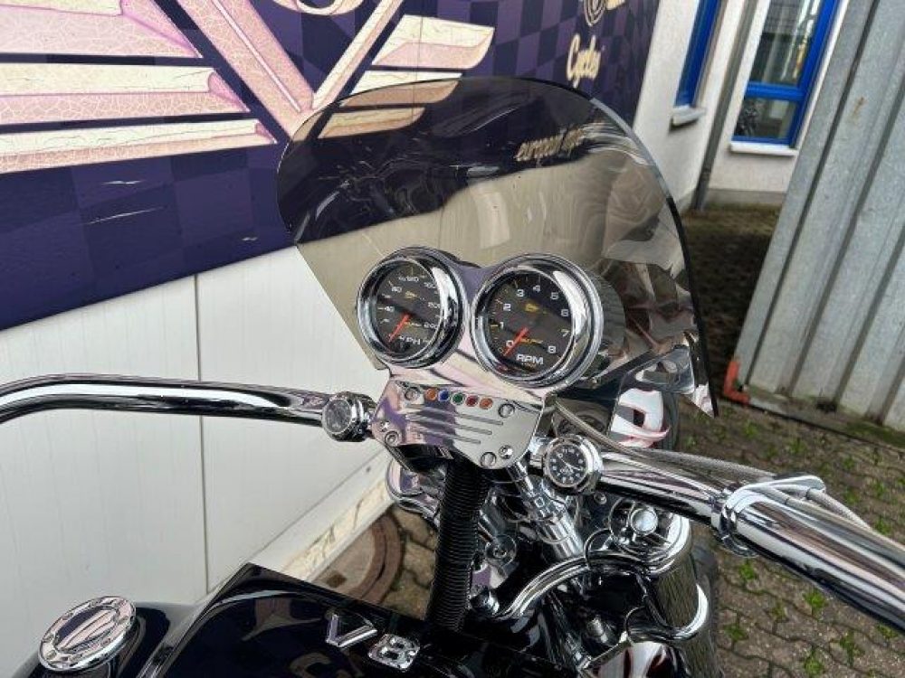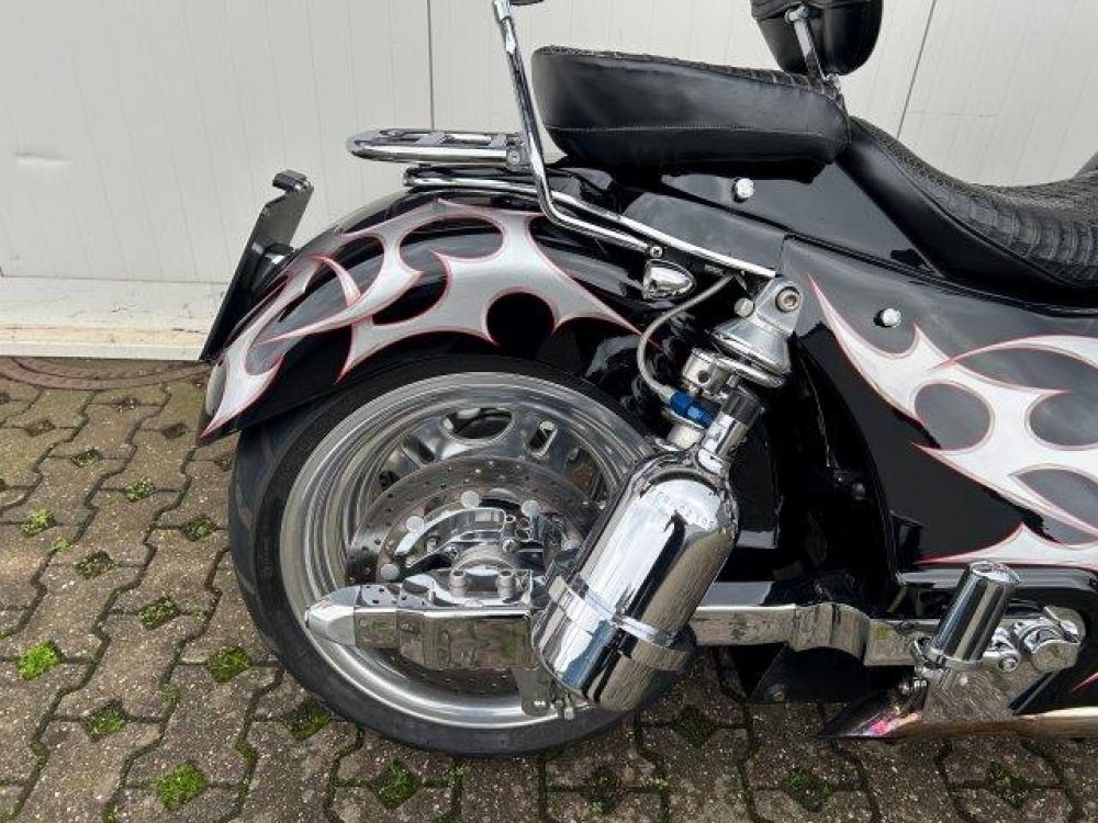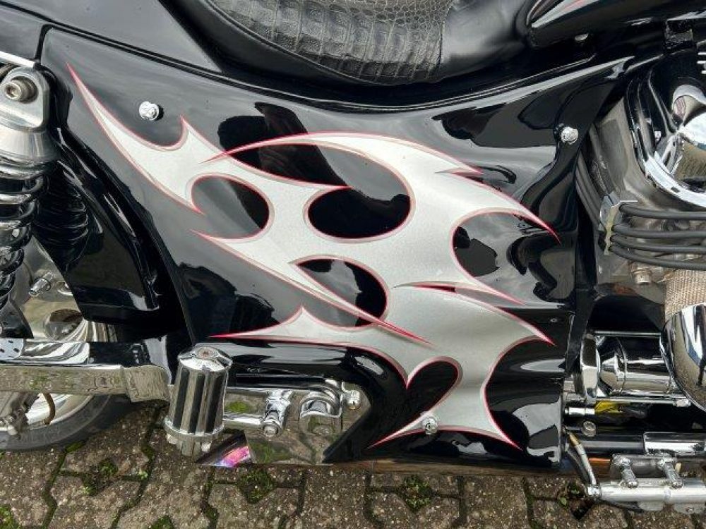 Besonderes: Kotflügel vorne Stahl, LED Scheinwerfereinsatz, Blinker vorne und hinten LED, Crash Bars 60mm VA mit integrierten Blinkern und Tagfahrlicht, Tankdeckel Custom, Einspritzleistenabdeckung, Rahmenblenden unten verchromt, Custom Seitendeckel, Custom Kühlerverkleidung, Windvest Windschild, Custom Auspuffendstücke, Sissy Bar mit Luggage Rack, Große Getriebeölwanne und Zusatzöltank, Custom Pulley hinten verchromt, M-Lock, Sitzbank Echtleder, Spiegel mit Blinker, Dash Inserts, Jockey Shifter.