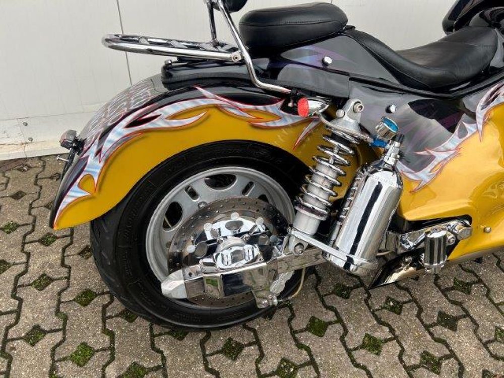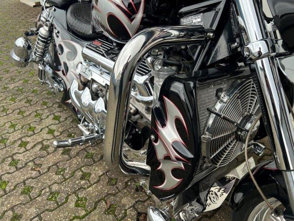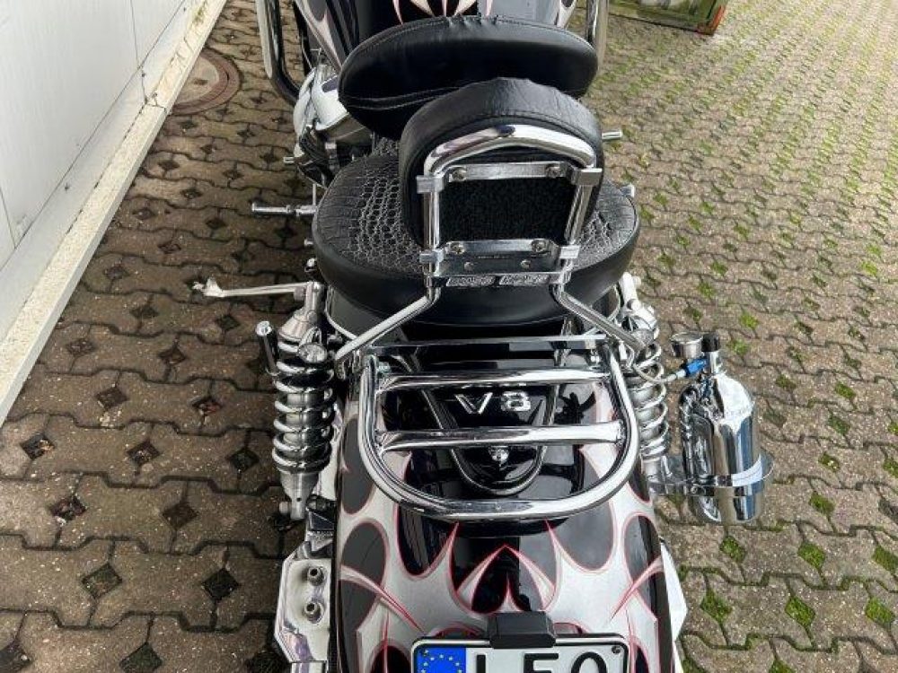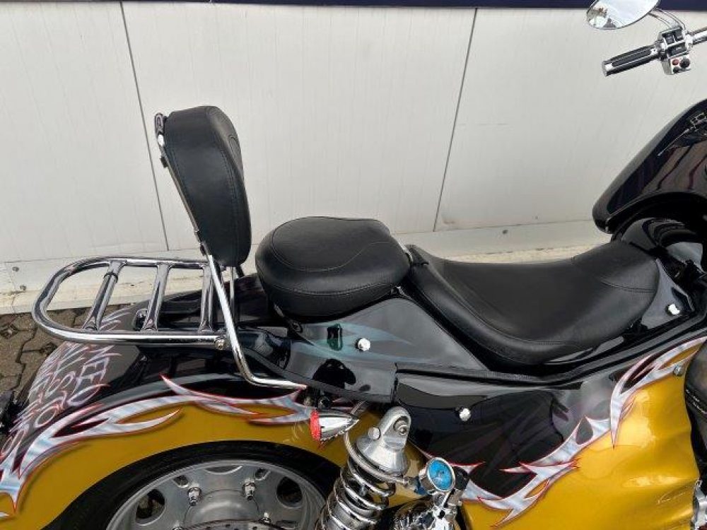 Besonderes: Lachgasflaschen (nicht angeschlossen), Sissy Bar mit Luggage Rack, Crash Bars Chrom, Dashinserts chrom, Großer Getriebeölkühler, Windvest Windschild, Auspuffanlage mit Kat und Schalldämpfer in Sidepipe Optik, Auspuffklappe am Krümmer, LED Blinker vorne und hinten, Lower Airdam, LED Scheinwerfereinsatz, Motor neu vor 1500km.