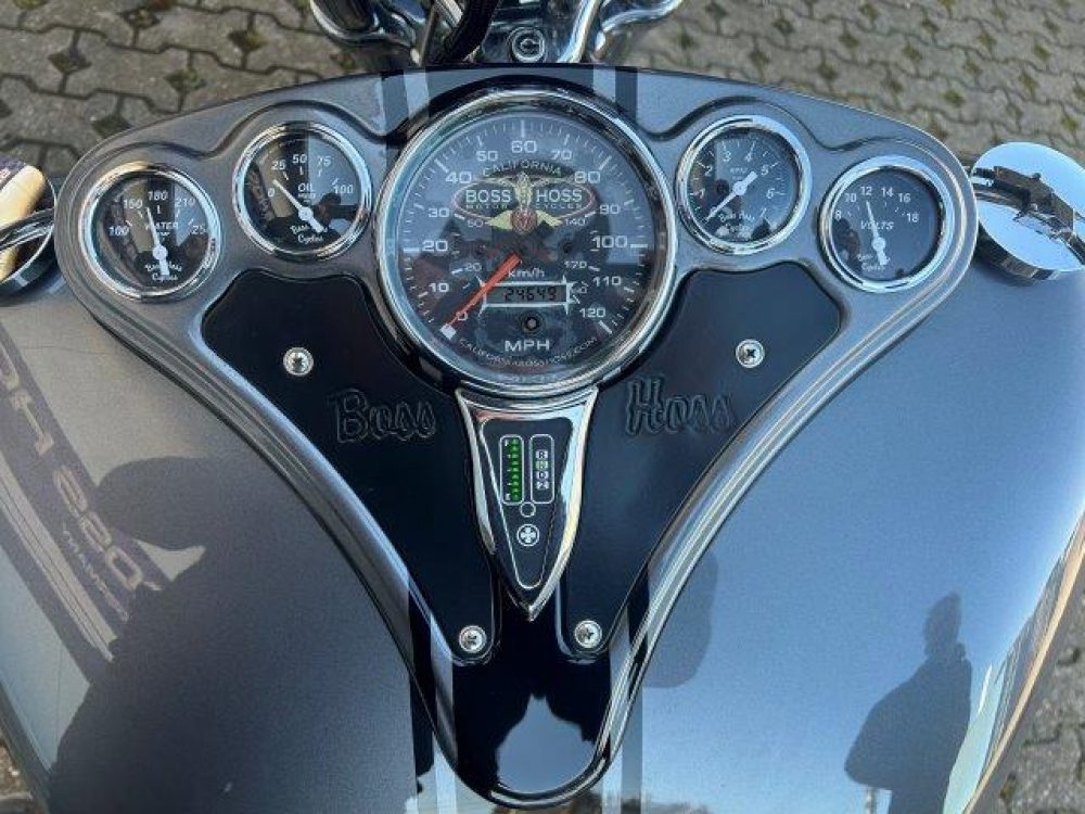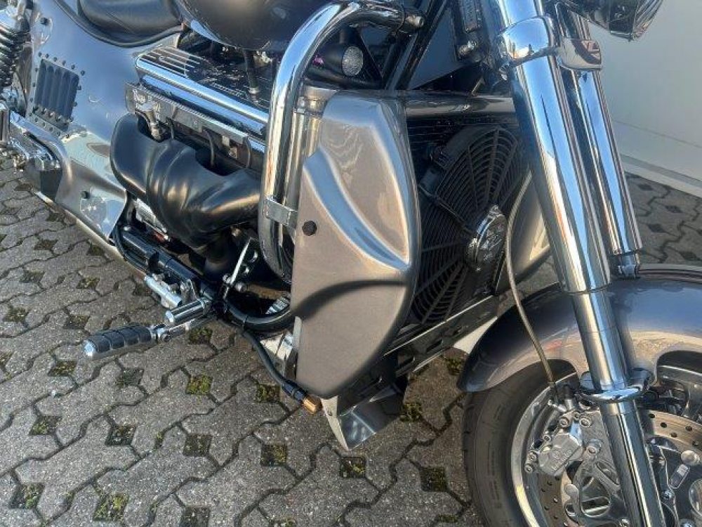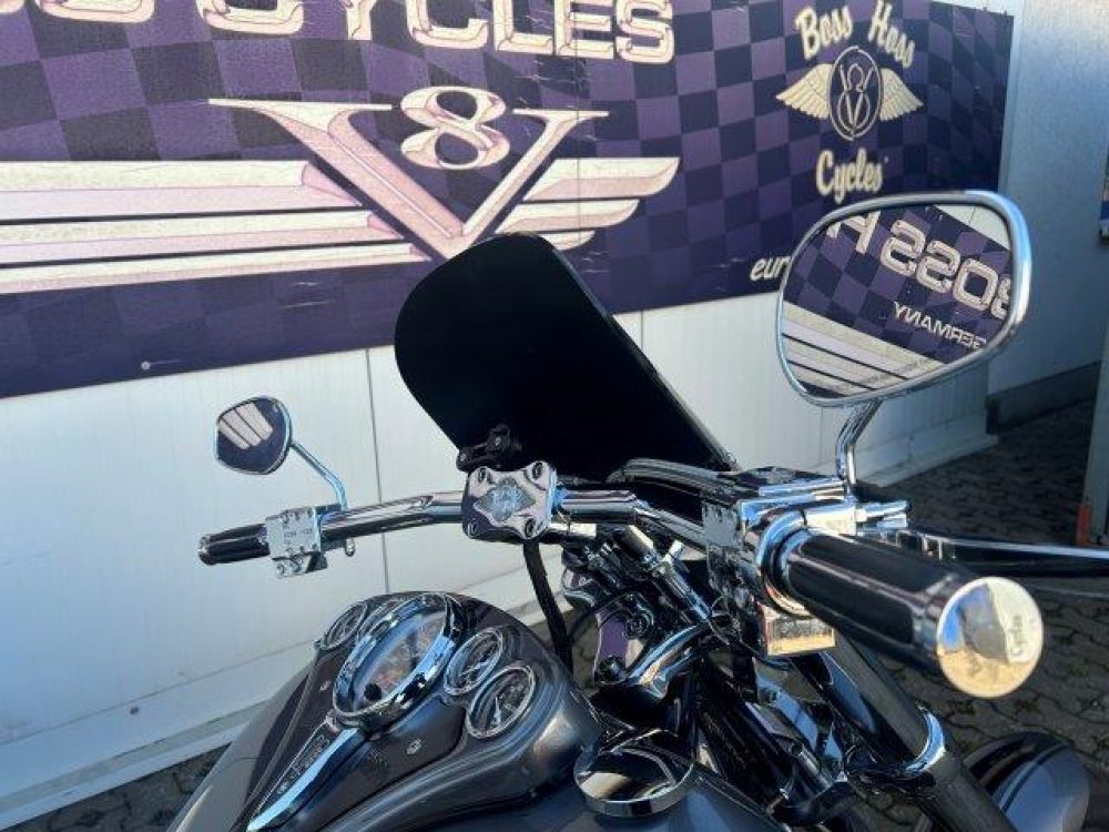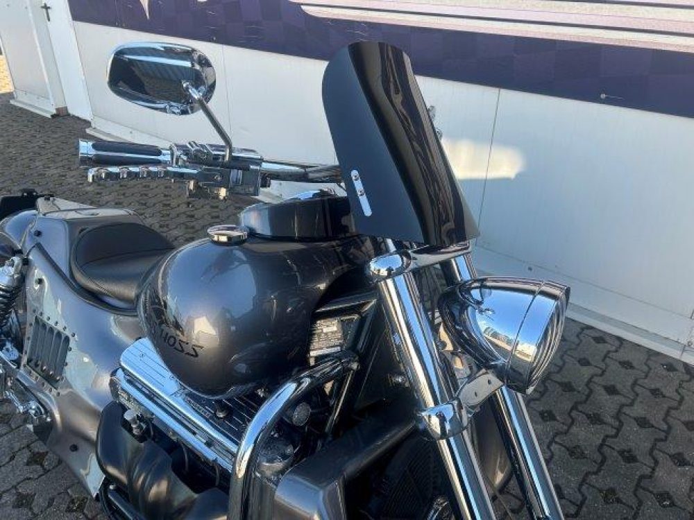 Besonderes: Sissy Bar mit großem Kissen, Luggage Rack, Windvest Windschild getönt, große Getriebeölwanne, Custom Tankdeckel, Hyper Pro Stoßdämpfer, Mustang Touring Sitzbank, Crash Bars chrom, Loop Idle Programm, Lower Airdam mit Running lights, Zusatzscheinwerfer, Satteltaschen, Rücklichtblende V8.