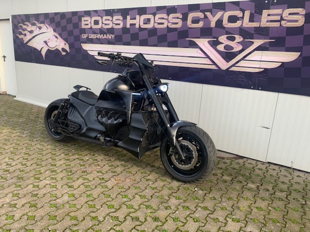 Besonderes: Felgen Ricks, Auspuffanlage mit Fächerkrümmer Mountain Boss Hoss, Schaltergehäuse von 2006er Modell, Heckfender mit integriertem, Rücklicht, Custom Tankdeckel, Lower Airdam, upper Airdam, Kotflügel vorne und hinten Stahl, Spiegel mit integrierten Blinkern, Alarmanlage, Custom Stretchtank, Custom Seitendeckel, Blinker hinten in Verkleidung integriert, Anzeigen Dakota Digital, Doppelscheinwerfer.